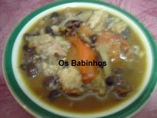 Tinha uma lata de feijão preto e sem ideias o que fazer com ele, lembrei-me que tinha visto no site Petiscos, uma receita de Feijoada de Atum... então foi só inventar.